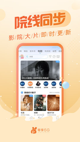 粤享5G是中国移动通信集团广东有限公司推出的手机影视软件,新用户登录即可领取新人10g流量,影视看不停!粤享5G app精选热门影视在线点播,院线大片即时同步,让你最快观看到最新上映的电影,软件内还有各种你爱看的综艺,快来体验吧!